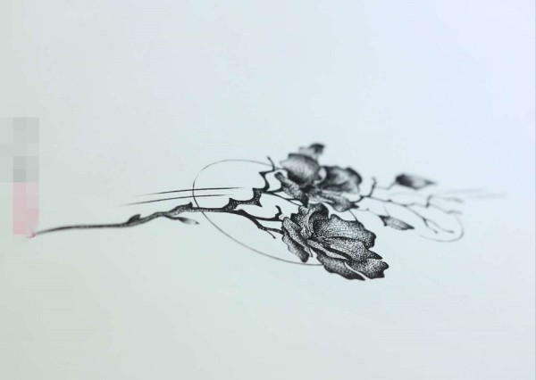 清新线条点刺技巧唯美花朵纹身手稿素材