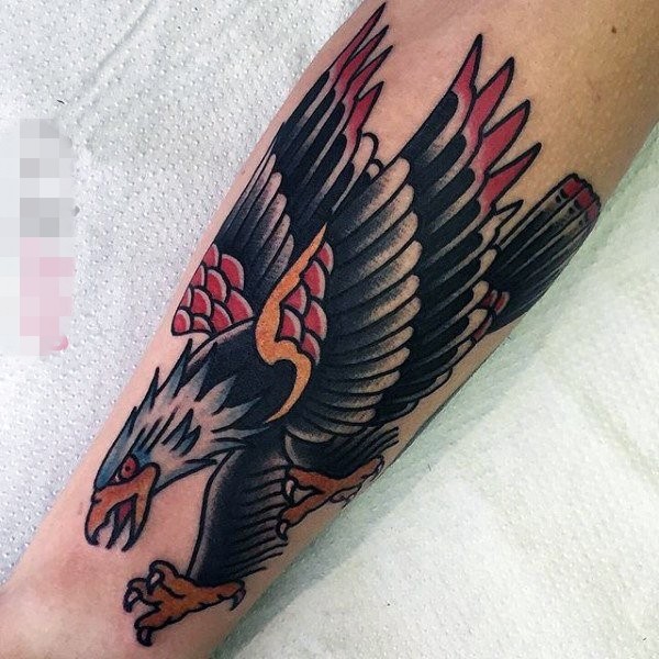 男生都喜欢的黑色素描点刺技巧霸气老鹰纹身图案