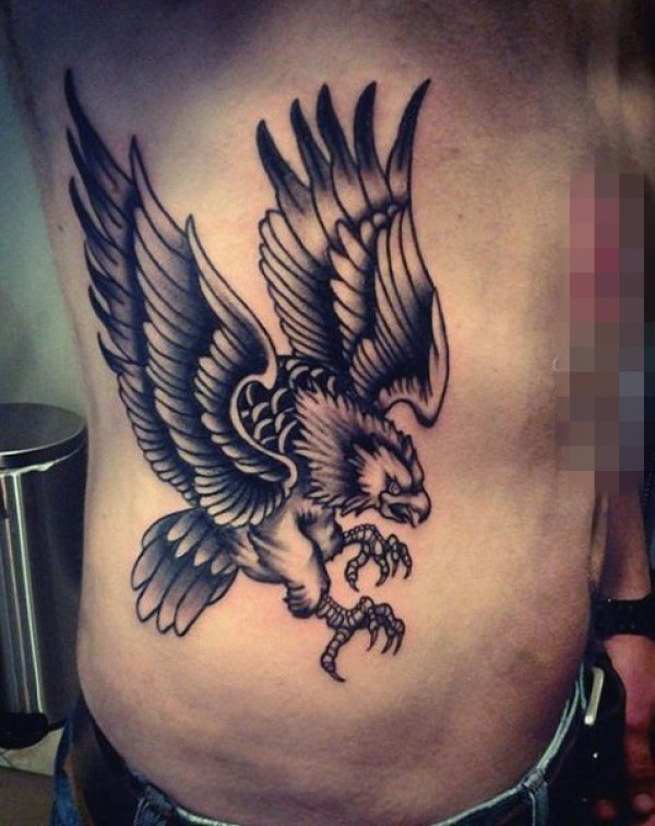 男生都喜欢的黑色素描点刺技巧霸气老鹰纹身图案