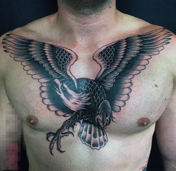 男生都喜欢的黑色素描点刺技巧霸气老鹰纹身图案