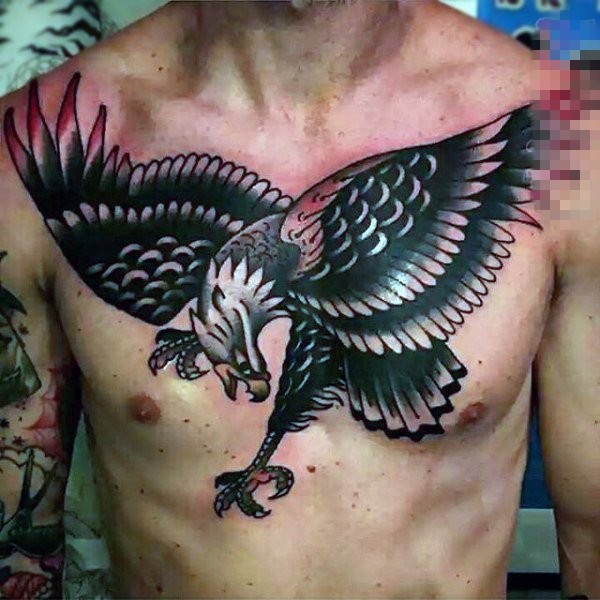 男生都喜欢的黑色素描点刺技巧霸气老鹰纹身图案