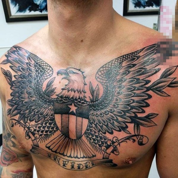 男生都喜欢的黑色素描点刺技巧霸气老鹰纹身图案