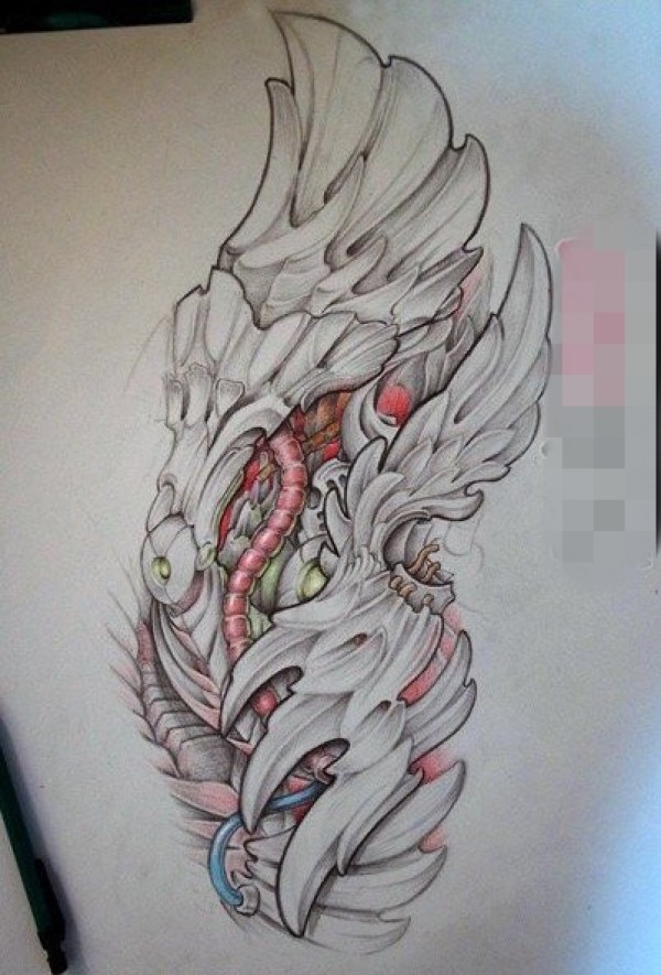 超具设计感的彩绘素描霸气翅膀纹身手稿