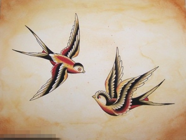 彩绘素描创意个性文艺小清新小鸟纹身手稿