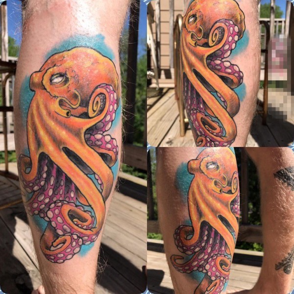 男生腿上彩绘技巧个性章鱼喷墨纹身图片