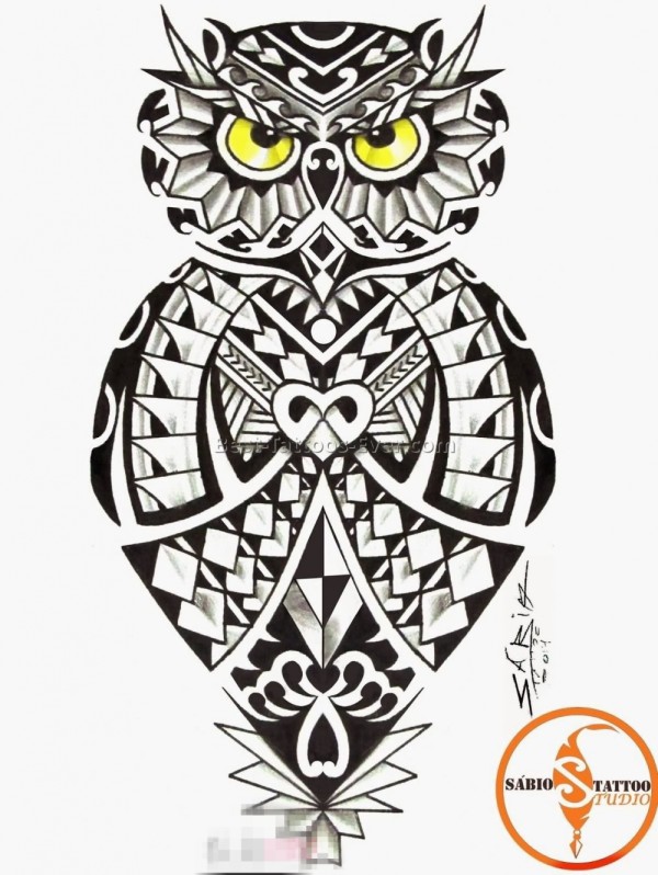 严肃的黑色几何动物纹身猫头鹰纹身手稿