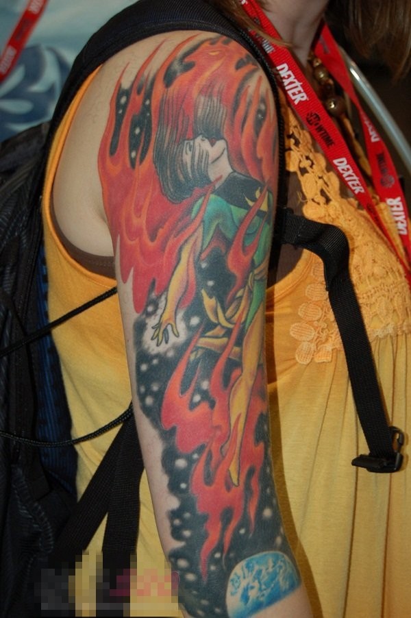 女生手臂上彩绘水彩创意个性火海中的女孩纹身图片