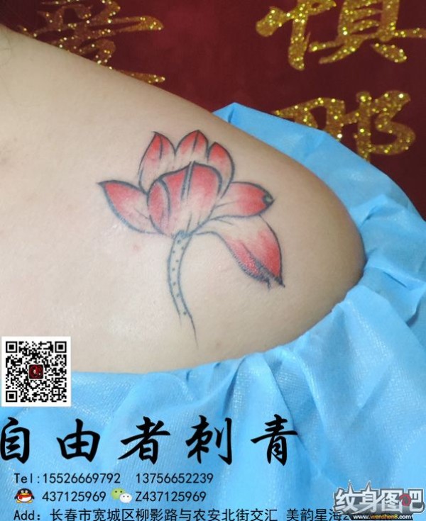 女生肩花纹身_15张女性双肩对称的肩花纹身图案作品图片