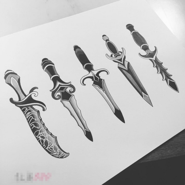 黑色素描创意个性一组匕首霸气纹身手稿