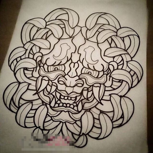 黑色线条素描创意个性花纹狮子头纹身手稿