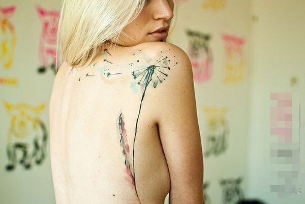 多款关于蒲公英的黑色素描水彩泼墨唯美纹身图案