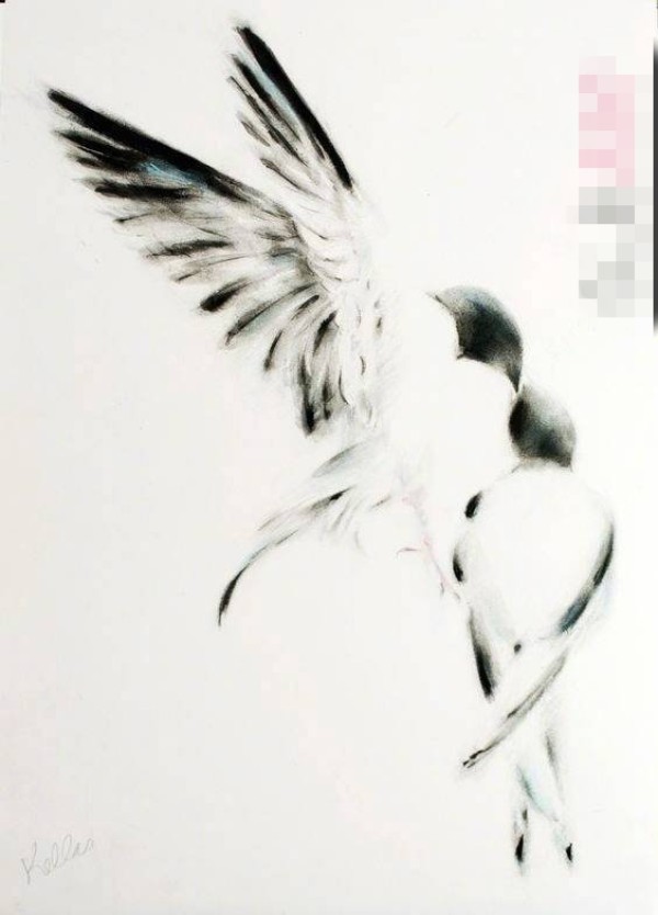 虚实结合的黑色点刺小动物小鸟纹身手稿