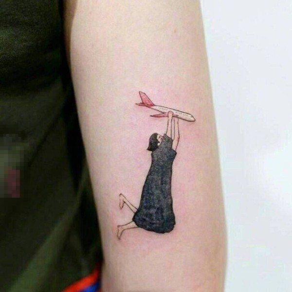 女生手臂上彩绘水彩漫画抽象女生人像纹身图片