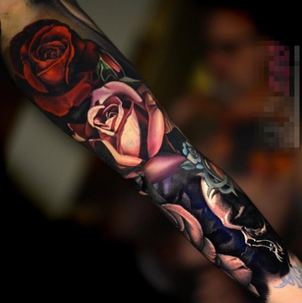 霸气的彩绘植物素材简单线条花臂纹身图案