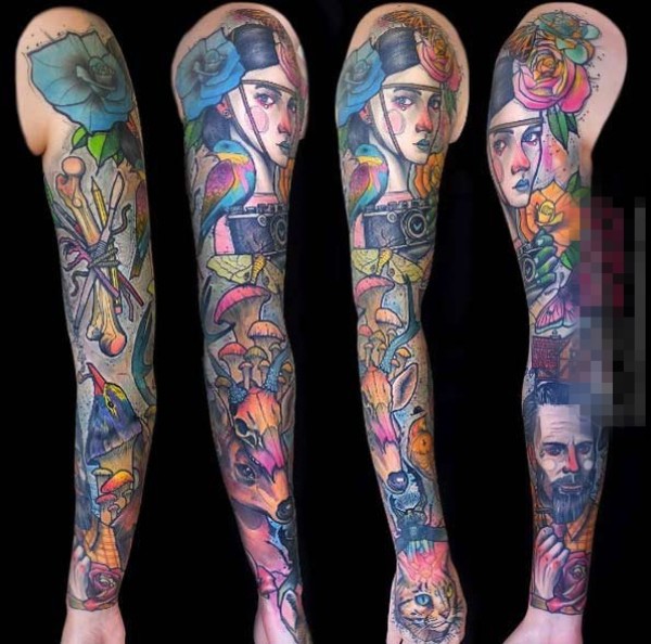 手臂一款彩色蘑菇纹身图案_臂部纹身图案大全_纹身图吧