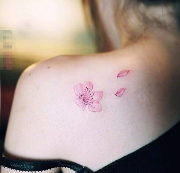 女生背部彩绘素描3d唯美樱花花朵花瓣文艺纹身图片