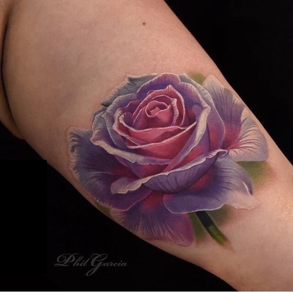 欧美玫瑰纹身 男生手臂上花朵纹身图片