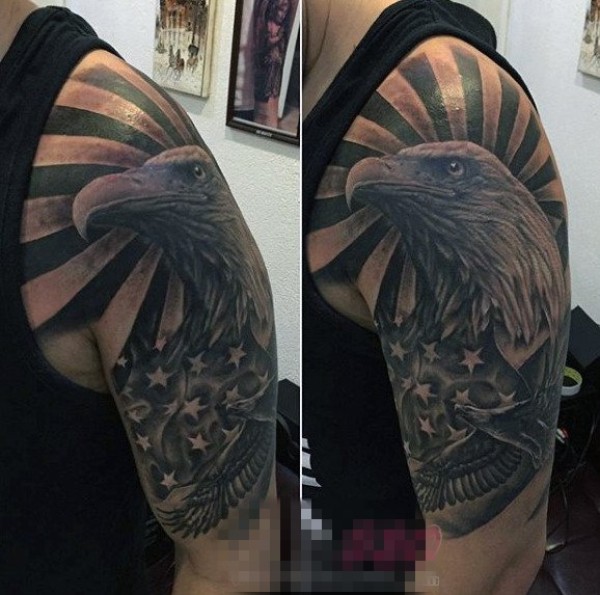 男生都喜爱的黑色素描点刺技巧创意个性霸气老鹰纹身图案