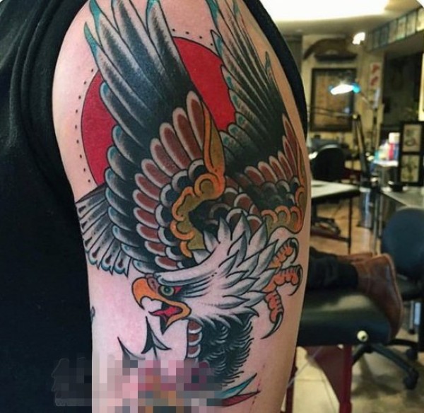 男生都喜爱的黑色素描点刺技巧创意个性霸气老鹰纹身图案