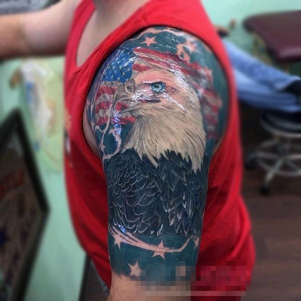 男生都喜爱的黑色素描点刺技巧创意个性霸气老鹰纹身图案