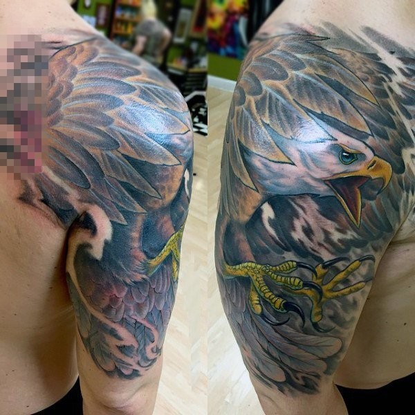 男生都喜爱的黑色素描点刺技巧创意个性霸气老鹰纹身图案