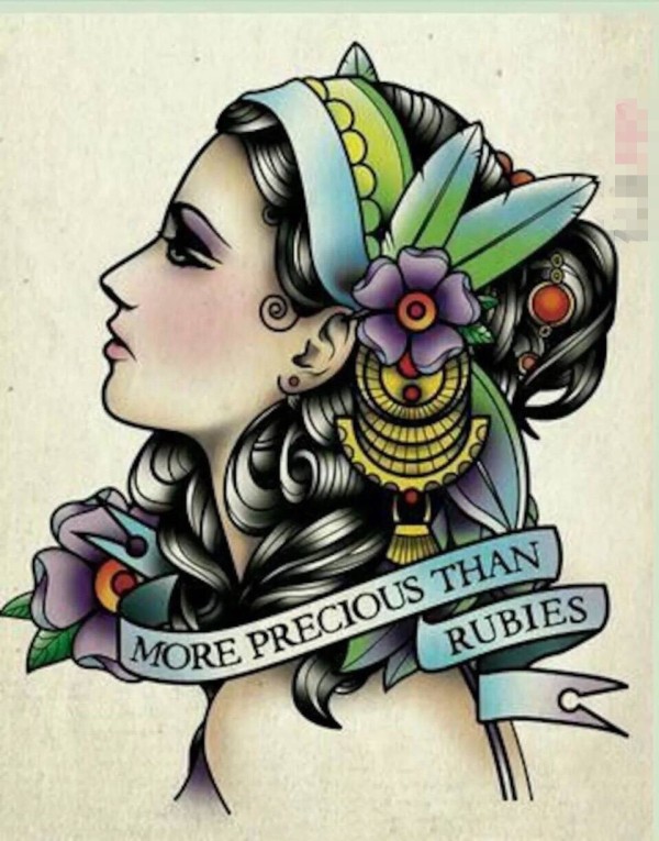 漂亮的彩绘英文短句和植物素材人物肖像纹身图片