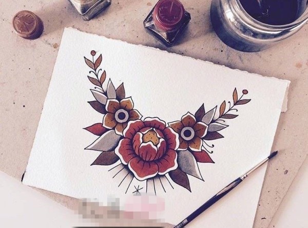 彩绘水彩创意个性文艺小清新唯美花朵纹身手稿