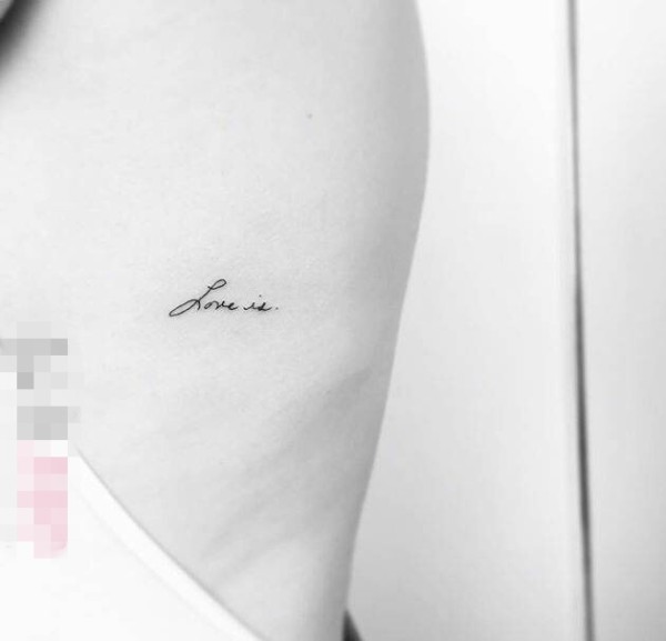 女生侧腰上黑色抽象线条有意义的英文单词纹身图片