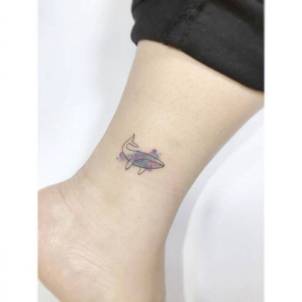 女生脚踝上黑色线条动物鲸水彩泼墨文艺小清新纹身图片