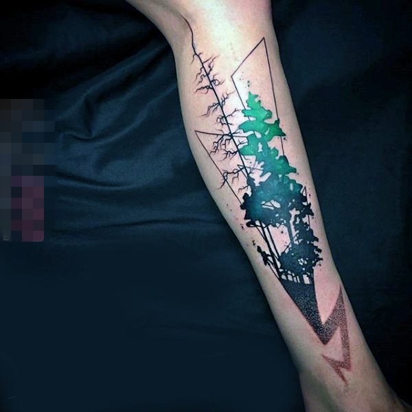 关于大自然的抽象线条植物树和山水风景纹身图案