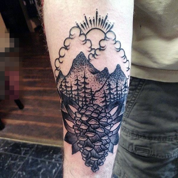 关于大自然的抽象线条植物树和山水风景纹身图案