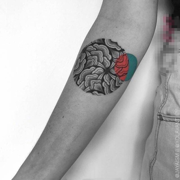 女生手臂上黑色素描创意花纹圆形纹身图片