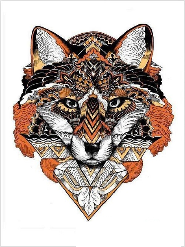彩绘水彩创意个性花纹狼狗头纹身手稿