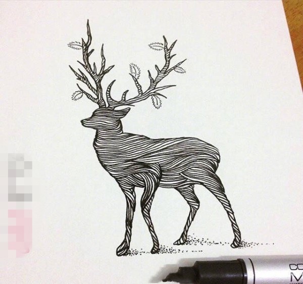 黑色线条创意个性动物文艺小清新纹身手稿