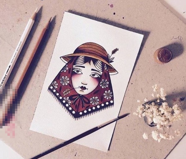 彩绘水彩创意个性抽象女生人像纹身手稿