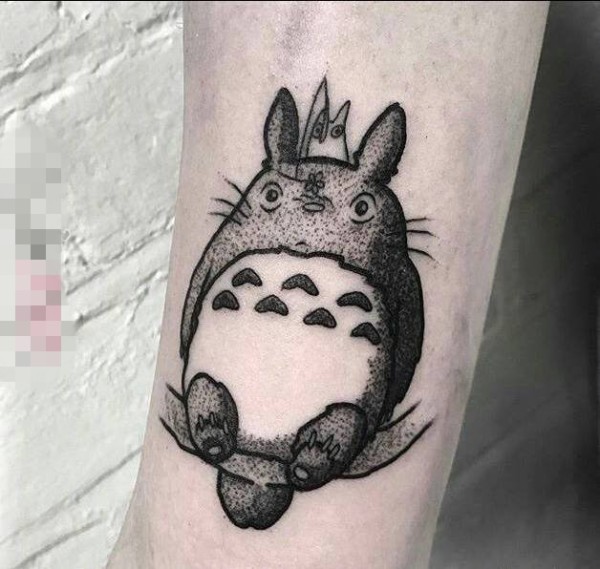 女生手臂上黑色素描点刺技巧创意卡通动漫纹身图案