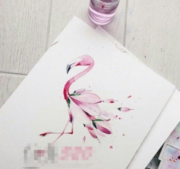 唯美的彩绘技巧植物素材花朵和仙鹤纹身手稿