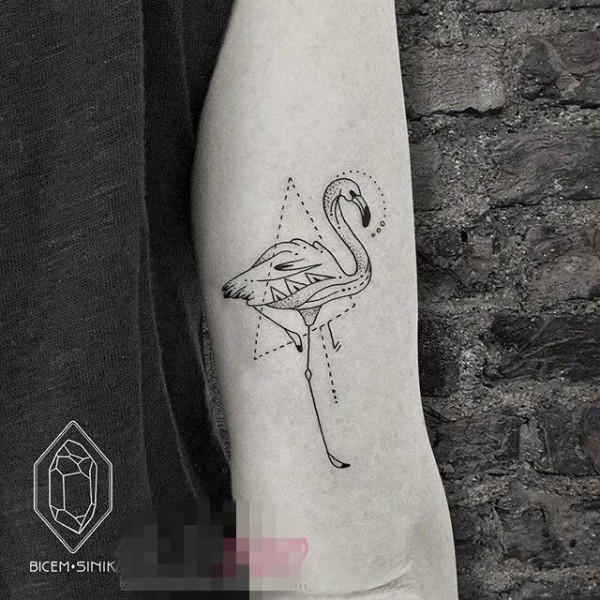手臂上黑色线条素描几何元素创意个性纹身图案