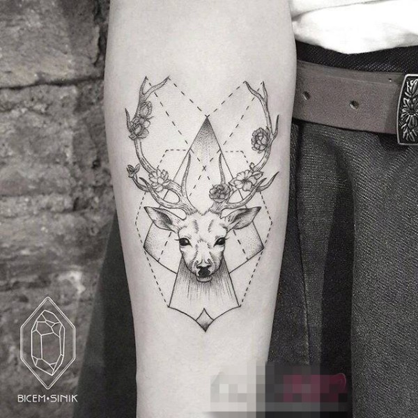 手臂上黑色线条素描几何元素创意个性纹身图案