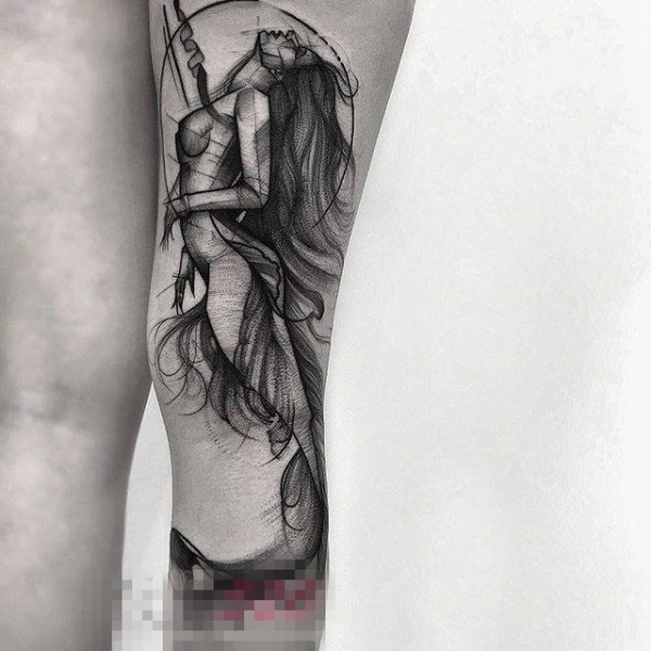 手臂上黑色素描点刺技巧几何元素创意纹身图案