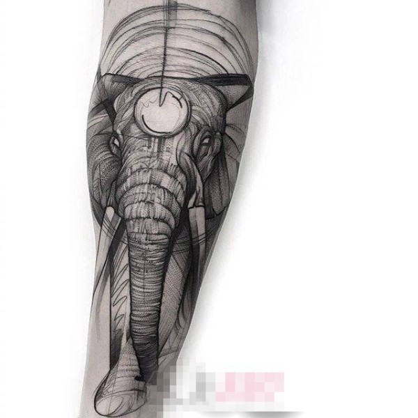 手臂上黑色素描点刺技巧几何元素创意纹身图案