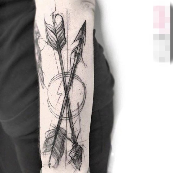 手臂上黑色素描点刺技巧几何元素创意纹身图案