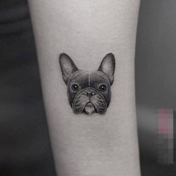 女生手臂上黑色素描点刺技巧创意可爱小狗纹身图片