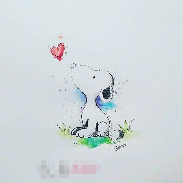 彩绘素描创意个性卡通可爱史努比小狗纹身手稿