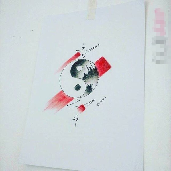 彩绘素描创意搞怪阴阳八卦纹身手稿