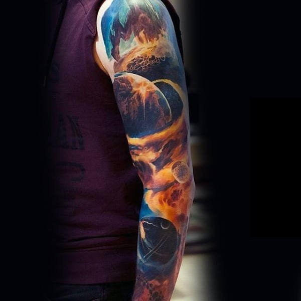 多款绚丽多彩的彩绘技巧创意星空纹身图案