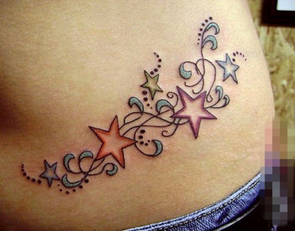 女生侧腰上彩绘水彩创意星星文艺纹身图片