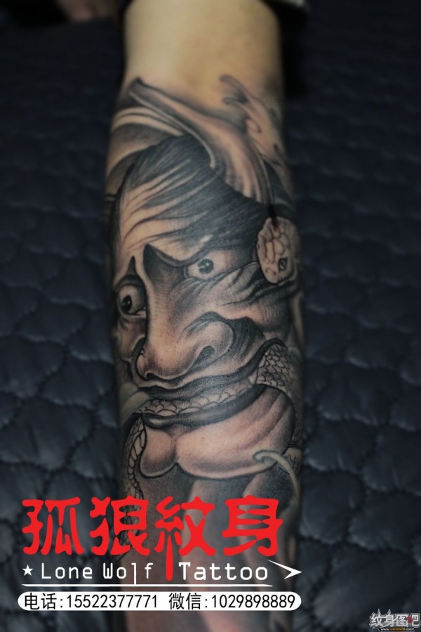 小臂 般若纹身 宝坻最好纹身店 孤狼纹身作品 天津