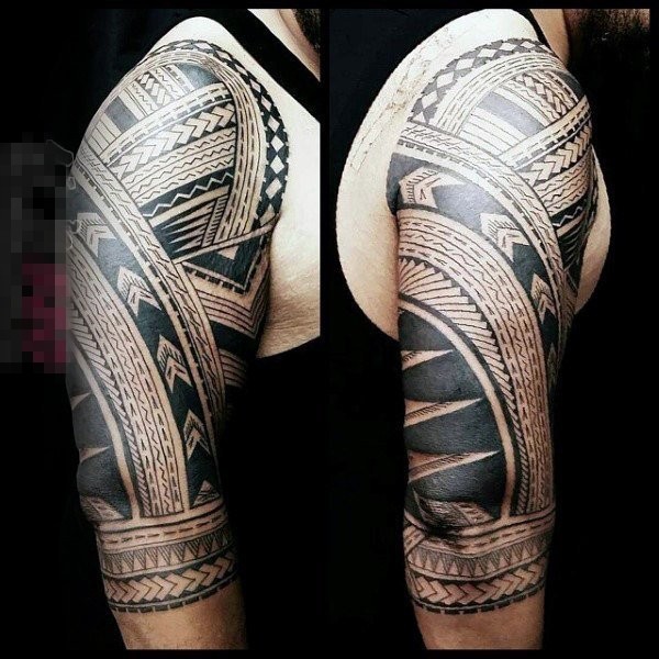 男生手臂上黑色线条几何元素创意霸气花臂纹身图片