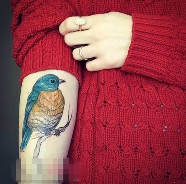 女生手臂上彩绘水彩创意可爱小鸟纹身图片